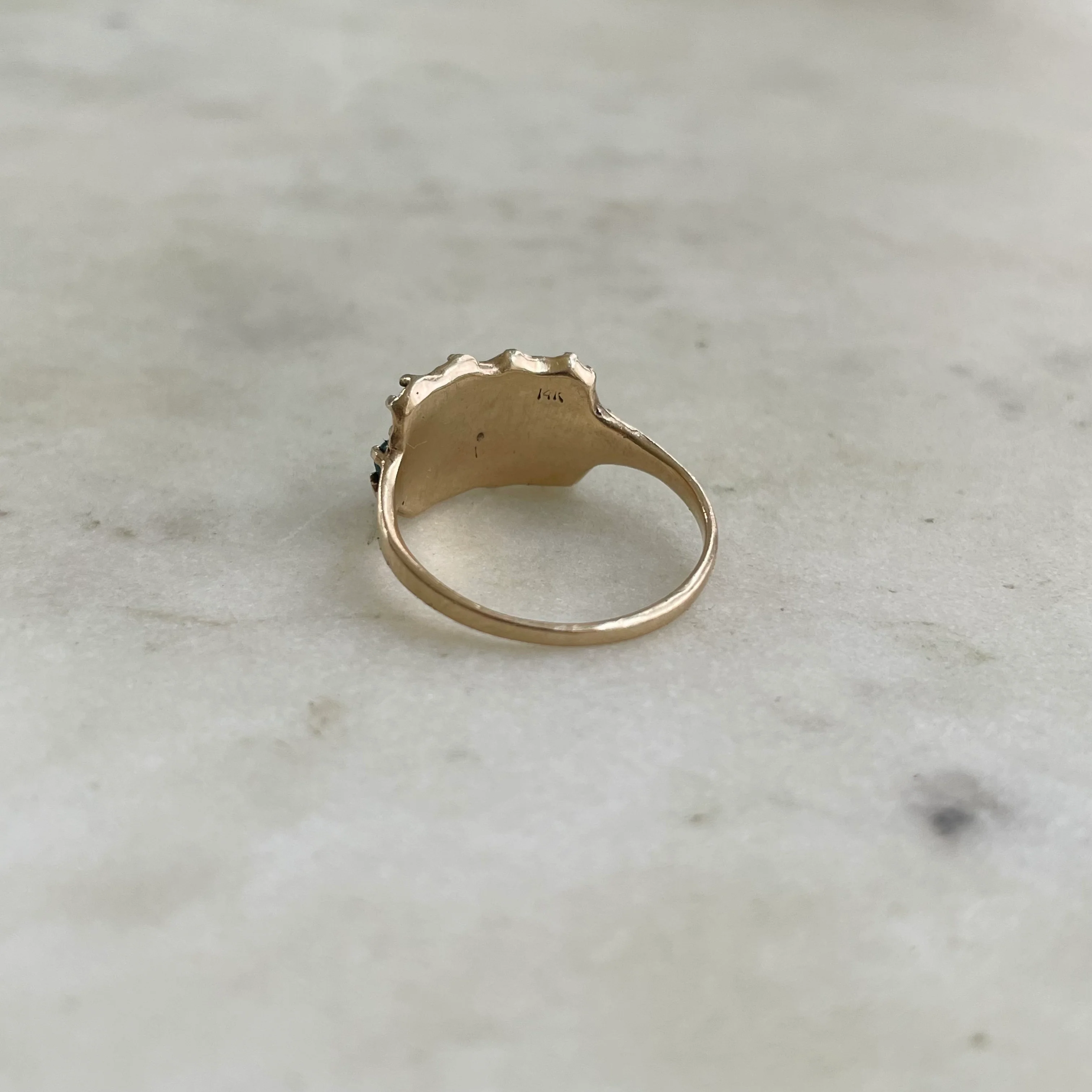 14K GOLD 13 STONE RING — MALACHITE