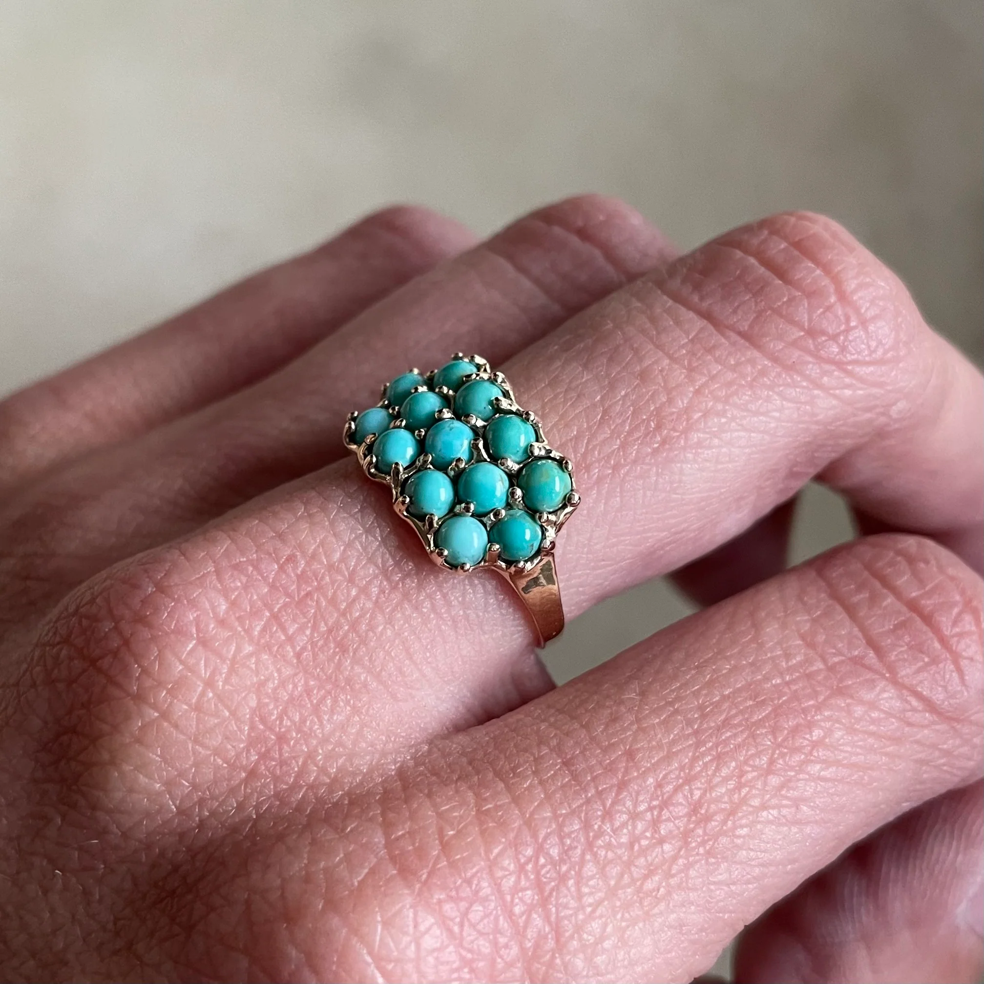 14K GOLD 13 STONE RING — TURQUOISE RING