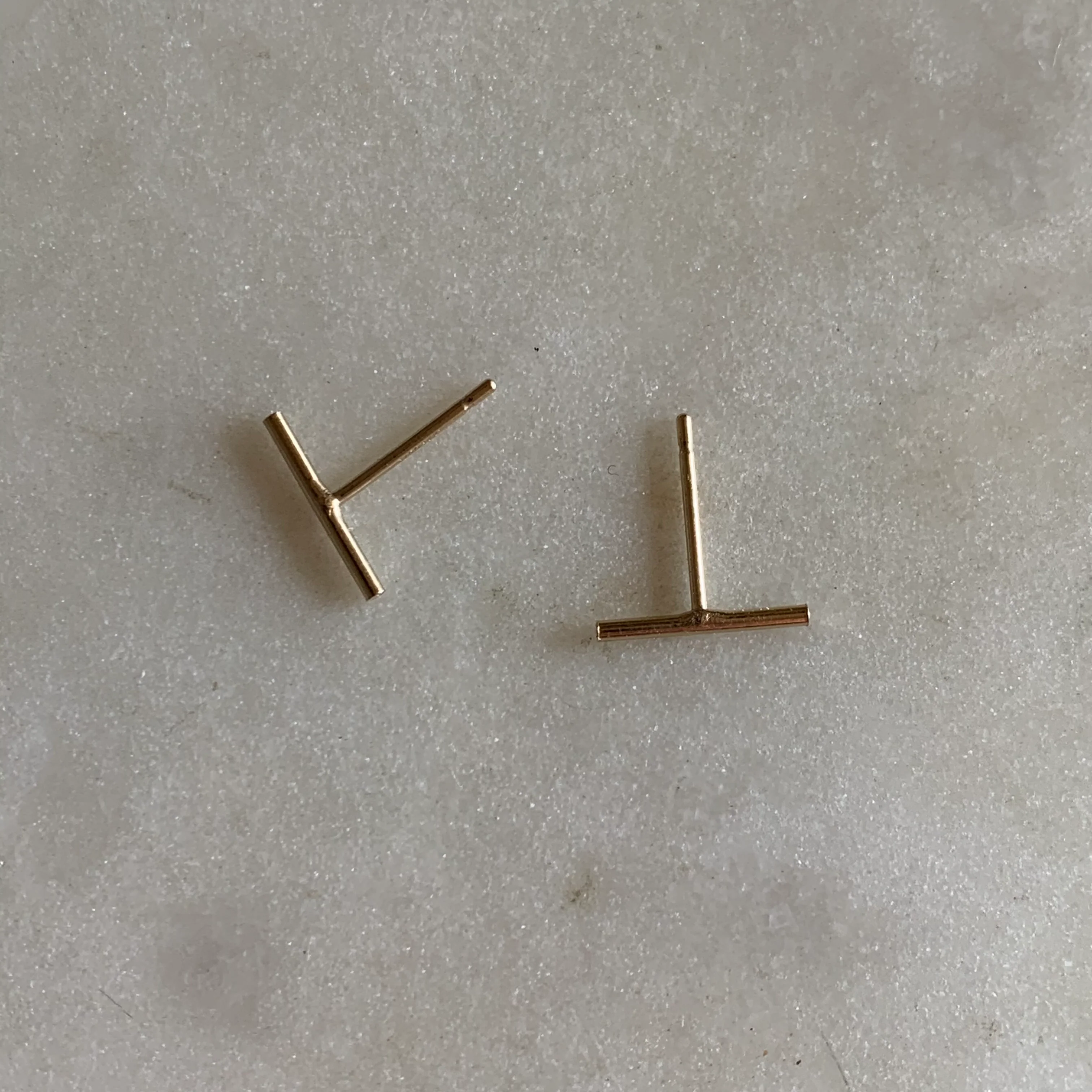 These dainty bar post earrings feature a rounded bar with a bright finish.