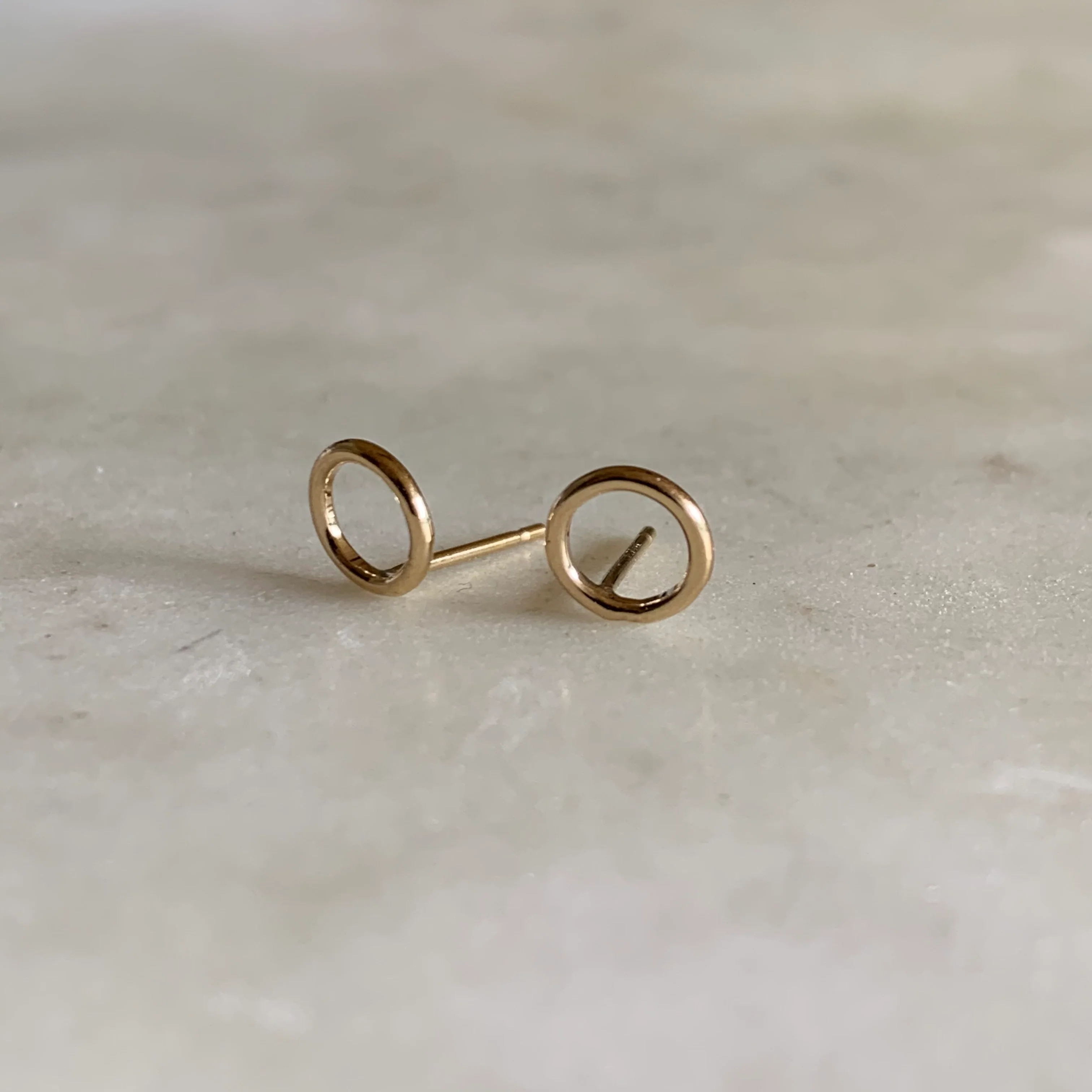 These simple circle earrings feature an open 7-millimeter circle made from round wire. This design is lightweight and comfortable to wear.
