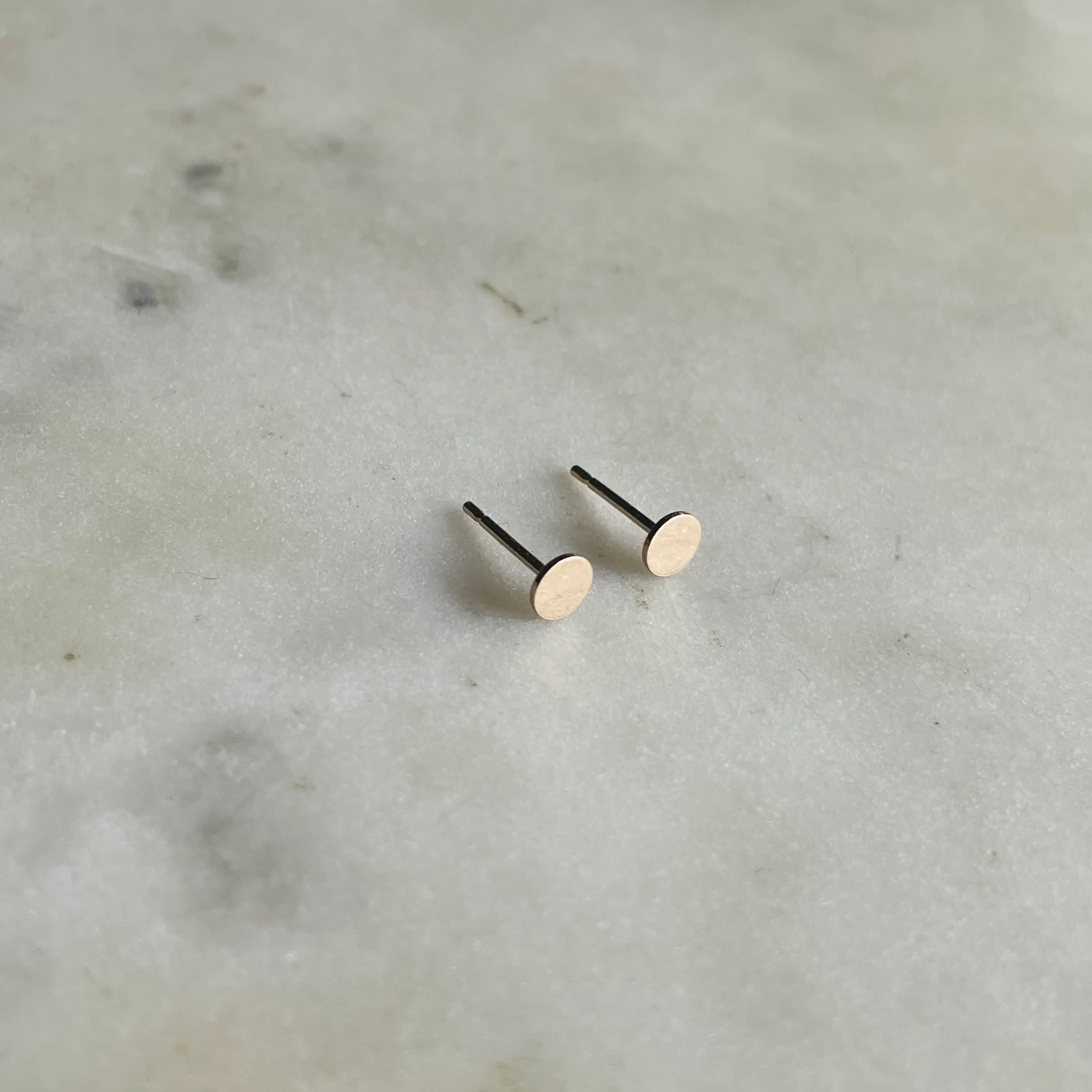 These simple "dot" earrings feature a solid, flat 4-millimeter circle with a smooth finish. This design is lightweight and comfortable to wear.